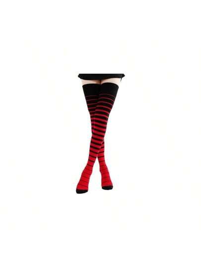 Kayhoma Extra Long Gradient Zebra Stripe Thigh High Socks Over The Knee High Socks - 黑色/紅色 - 查看 1