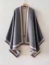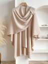 一件简约高端纯色格子仿貂毛领披肩斗篷,女士时尚百搭加厚保暖开衫外套,优雅柔软的绒毛斗篷,适合日常穿着,秋冬季可搭配连衣裙