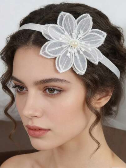 白色蕾丝花朵珍珠发箍 | 优雅新娘头饰,适合婚礼和婚纱照 | 精致花朵新娘发饰