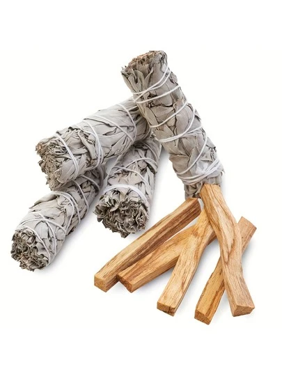 白鼠尾草与圣木组合,用于熏香、冥想和熏香,节日礼物,家居装饰,制香用品,猫香座,香棒座,香炉,香棒,香座,精神净化,节日装饰,禅宗美学,波西米亚风格,传统疗法,草药混合物,熏香套装,圣木棒,家居装饰,礼品购物者 - 彩色 - 查看 10