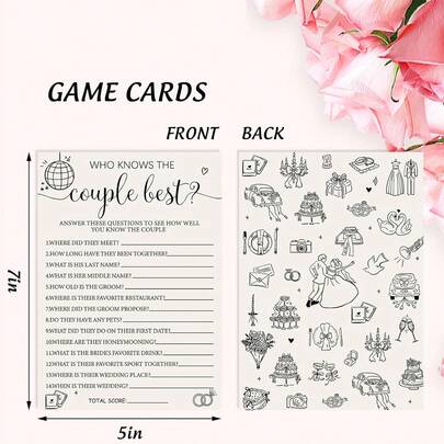 谁最了解这对新人?婚礼派对游戏卡片,黑色,新娘送礼会游戏卡片,婚礼订婚派对用品