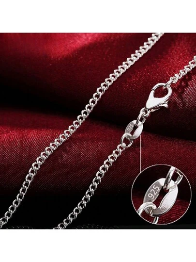 批发银色 16/18/20/22/24/26/28/30 英寸 2 毫米侧链项链女士男士时尚婚礼饰品 - 銀色 - 查看 1