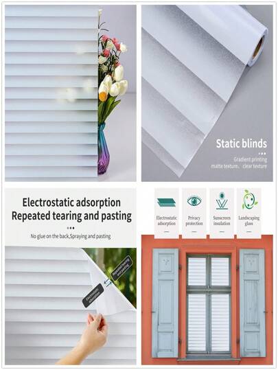 窗戶防窺膜,帶安裝工具,百葉窗圖案,靜電吸附,可拆卸,防紫外線,熱控制,玻璃膜非常適合家庭淋浴辦公室玻璃門