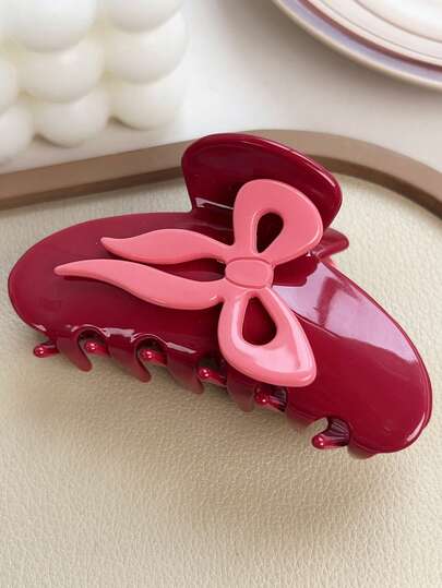 酒红色和粉色蝴蝶结发爪夹,可爱防滑发爪,适合浓密头发,女士大号发饰