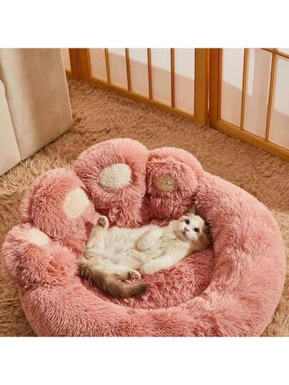 Winter Hot Cute Bear Paw Shaped Dog Bed And Cat Bed, Calm Donut Dog Bed, Warm And Comfortable Soft Dog Round Bed, Plush Dog And Cat Cushion Bed