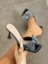女士高跟鞋,时尚派对、聚会、户外活动的理想之选。优雅奢华,金属饰面,蝴蝶装饰,神秘的波浪石纹理,一脚蹬设计,性感优雅的黑色高跟凉鞋,适合正式场合穿着。