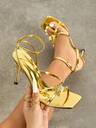 新款女士春夏季高跟鞋,时尚高端派对户外性感露趾蝴蝶 3D 金属魅力凉鞋