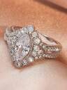 925 纯银镀玫瑰金椭圆形方晶锆石订婚/结婚/承诺戒指,奢华珠宝新娘礼物