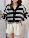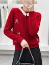 宽松蝴蝶结纽扣装饰圆领优雅长袖针织开衫