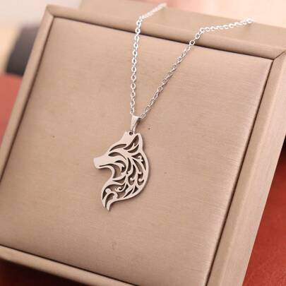 狼吊坠项链,男女情侣款,不锈钢材质,独特动物造型,颈链式设计,生日礼物佳选 - 銀色1 - 查看 7