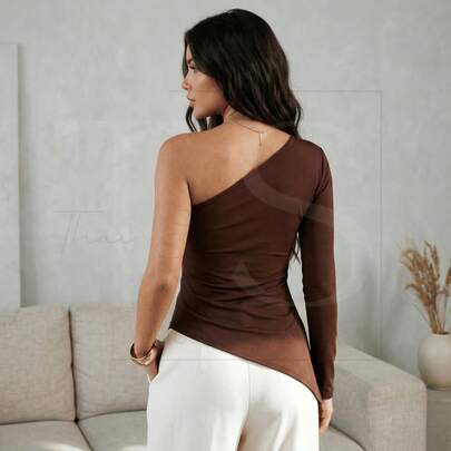 6. Women's Asymmetrical Blouse, One Shoulder, Long Sleeve, Fashionable, In Supplex Fabric.