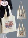 1个米色时尚小熊印花帆布手提袋,休闲购物袋