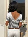 SHEIN 女士休闲纯色侧抽绳短袖T恤,夏季