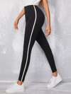 SHEIN EZwear 拼接條紋圖案緊身打底褲