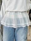 FRIFUL 女士透明超短荷叶边蕾丝下摆迷你裙、蛋糕裙