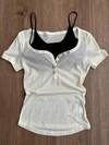 女士夏季蕾丝拼接二合一短袖T恤,适合情人节、秋冬假期穿着