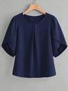 女士时尚优雅胸前荷叶边袖口下摆短袖上衣夏季