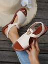加大码宽版黑色凉鞋,圆头蝴蝶结装饰女式一脚蹬拖鞋,系带度假风沙滩鞋,优雅休闲夏季宽脚平底凉鞋