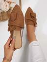 2025年秋季女士尖头平底一脚蹬平底鞋,蝴蝶结装饰,松紧带设计,卡其色,优雅休闲镂空舒适乐福鞋