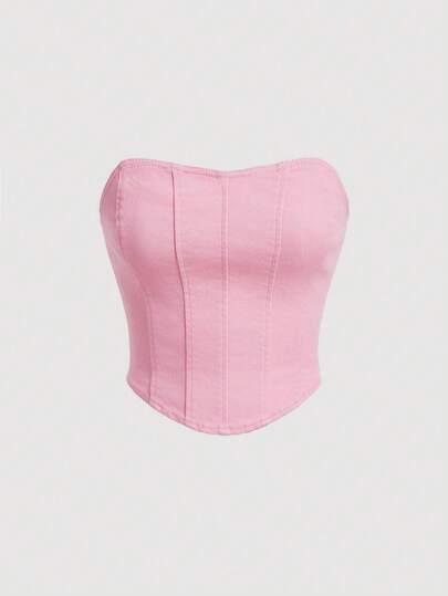 SHEIN MOD 女士拉鍊後背丹寧背心,前開衩設計 - 粉色 - 查看 1
