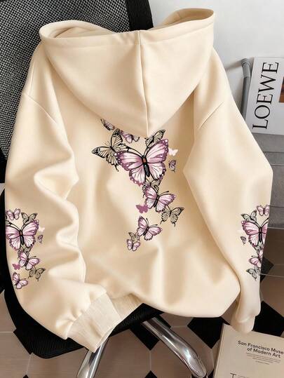 Resyla 女士杏色彩色蝴蝶印花时尚街头风套头卫衣 - 杏色 - 查看 7