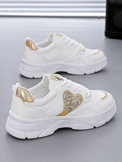 女士透气舒适轻便防滑缓冲休闲运动跑步运动鞋 - 金色 - 查看 1