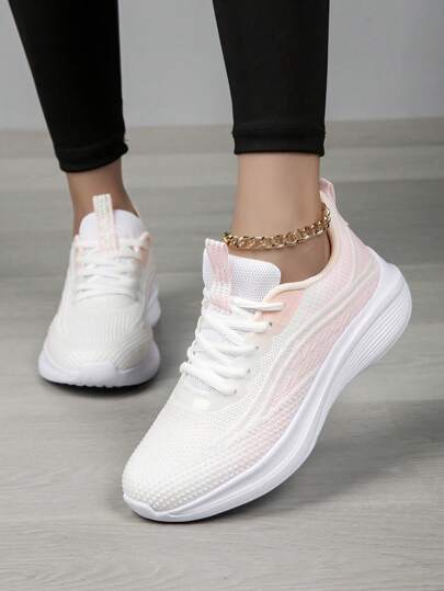 女士透气网眼运动鞋,轻便舒适平底鞋,适合工作、办公室、休闲装、春夏/秋季 - 淺粉色 - 查看 1