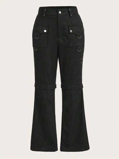 SHEIN EZwear 女士金属纽扣装饰喇叭裤 - 黑色 - 查看 1