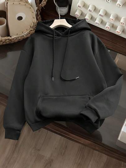 女士休闲连帽运动衫,纯色,夏季时尚 - 黑色 - 查看 1