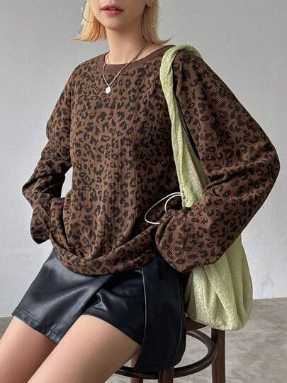 FRIFUL 女士休闲豹纹长袖衬衫,春秋 - 棕色 - 查看 1