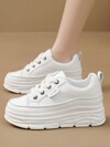 HUANQIU 2025新款女鞋登山鞋女士运动鞋厚底运动鞋网面透气小白鞋百搭轻便舒适系带软底休闲鞋跑步鞋白色四季鞋
