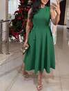 女士纯色优雅打结拉链连衣裙,适合婚礼、办公室等场合