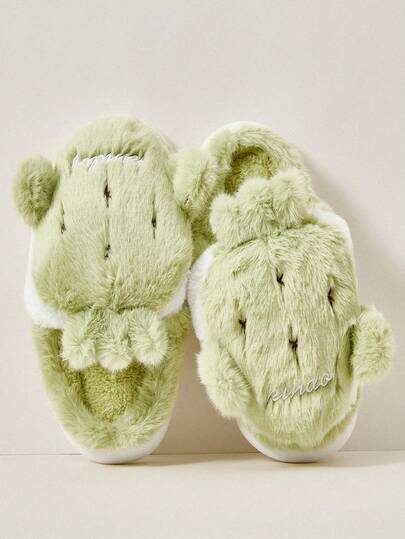 Cuccoo 可爱毛绒包头厚底保暖室内拖鞋,女士适用,秋冬 - 綠色 - 查看 1