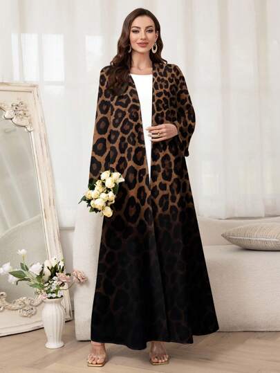 Al Najma 女士优雅豹纹渐变色长袖长袍,端庄长袍 - 彩色 - 查看 1