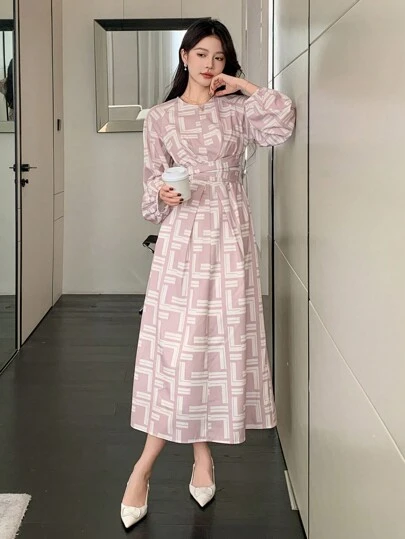 DAZY 女士优雅中长款花卉印花连衣裙,春夏 - 粉色 - 查看 1