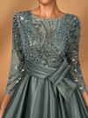 Serin 优雅奢华透明长袖刺绣蕾丝花泡泡珍珠 + 钻石蝴蝶结喇叭裙,适合婚礼、派对、度假、舞会、新娘晚礼服、新娘母亲