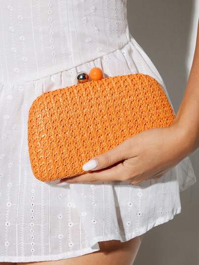 SHEIN BAE 女士时尚优雅纯色工作手拿包 - 橘色 - 查看 1