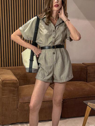 Chiquease 女士时尚复古卡其色条纹连体裤 - 卡其色 - 查看 1