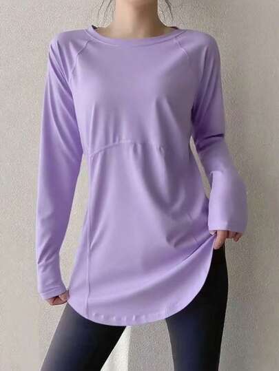 女士健身瑜伽上衣,速干运动衫,适合跑步、健身房锻炼,弹力压缩打底衫 - 紫丁香色 - 查看 1