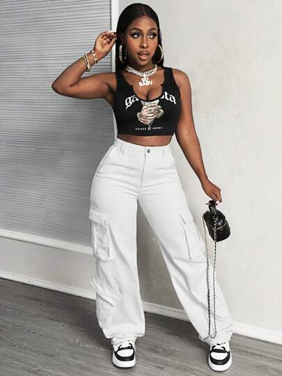 SHEIN Slayr 女士白色工作服款高腰直筒牛仔褲 - 白色 - 查看 1