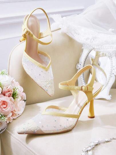CUCCOO HITCHD 女士尖头亮片设计时尚迷人高跟鞋 - 黃色 - 查看 12