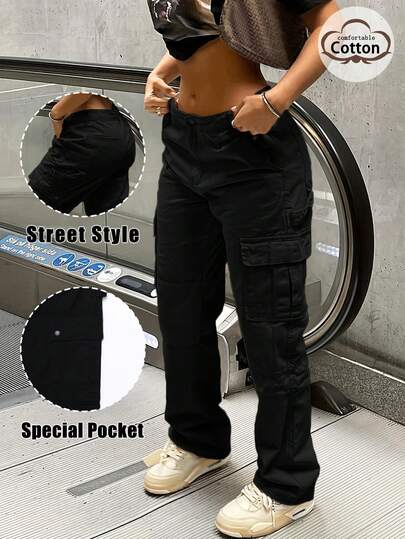 GILIPUR 新款工装阔腿裤,多口袋设计,复古优雅,适合日常休闲穿着,春、秋、冬三季皆宜,也适合新年、情人节等节日穿着。也可作为礼物赠送。适合外出、约会和办公穿着。 - 黑色 - 查看 2