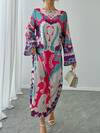 Al Najma 女士春夏圆领编织滚边刺绣喇叭袖阿拉伯风格连衣裙,阿拉伯连衣裙