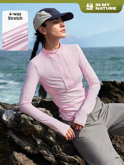 In My Nature 女士纯色立领拉链半襟休闲户外运动衫 - 淺粉色 - 查看 8