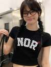 可爱滑板英文印花短袖中长T恤女款,夏季休闲上衣