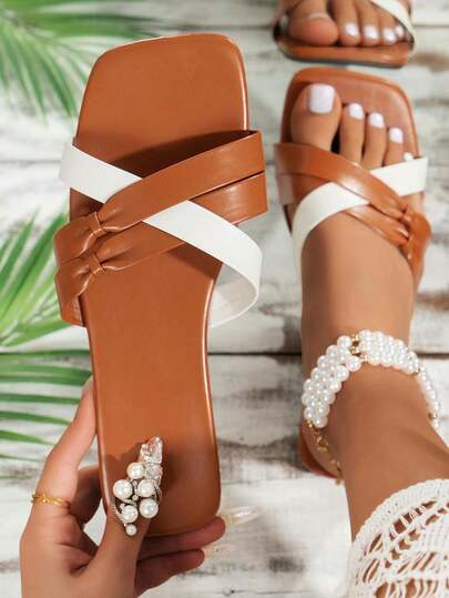 女性風格休閒時尚平底涼鞋,夏季鞋履,女士拖鞋,棕色涼鞋