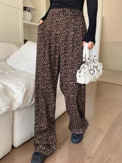 DAZY 女士西装裤 豹纹印花常规长裤 - 棕色 - 查看 1