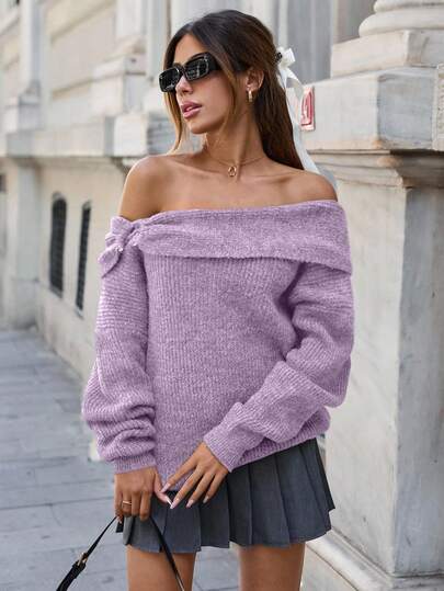 SHEIN Cottnline 女士 Bardot 领带扣套头衫 - 紫丁香色 - 查看 1
