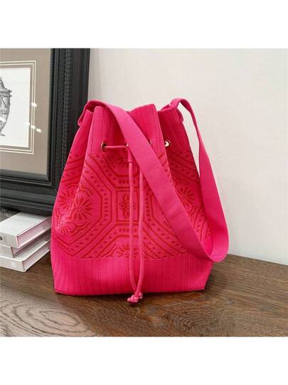 Women Crossbody - 抽繩磁扣--幾何花玫紅 - 查看 1