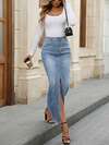 Strévra 女士宽松休闲牛仔半身裙,毛边下摆,秋季款